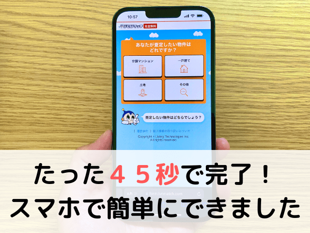 たった45秒で、簡単に不動産の査定価格を調べることができるのでオススメです!